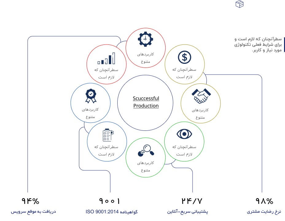 تیم متخصص و مجرب ،ما متعهد به ارائه خدمات پس از فروش و پشتیبانی فنی به مشتریان. است ،همچنین با اخذ گواهینامه های معتبر بین المللی کیفیت و ایمنی محصولات خود را تضمین کرده ایم.